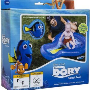 The Disney Finding Dory Splash Pool is a 3 foot wide inflatable pool for kids shaped like Dory!;Features character graphics from the new Disney Finding Dory movie;Heavy duty construction;Easy to unfold, inflate and fill;Sold individually.